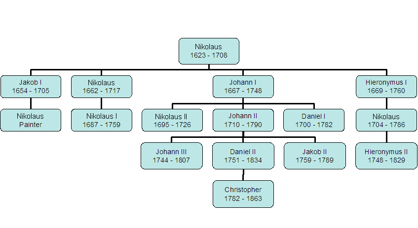 The family tree shown below is adapted from that presented by Karl Pearson. The Bernoullis who produced works related to probability or statistics have links.